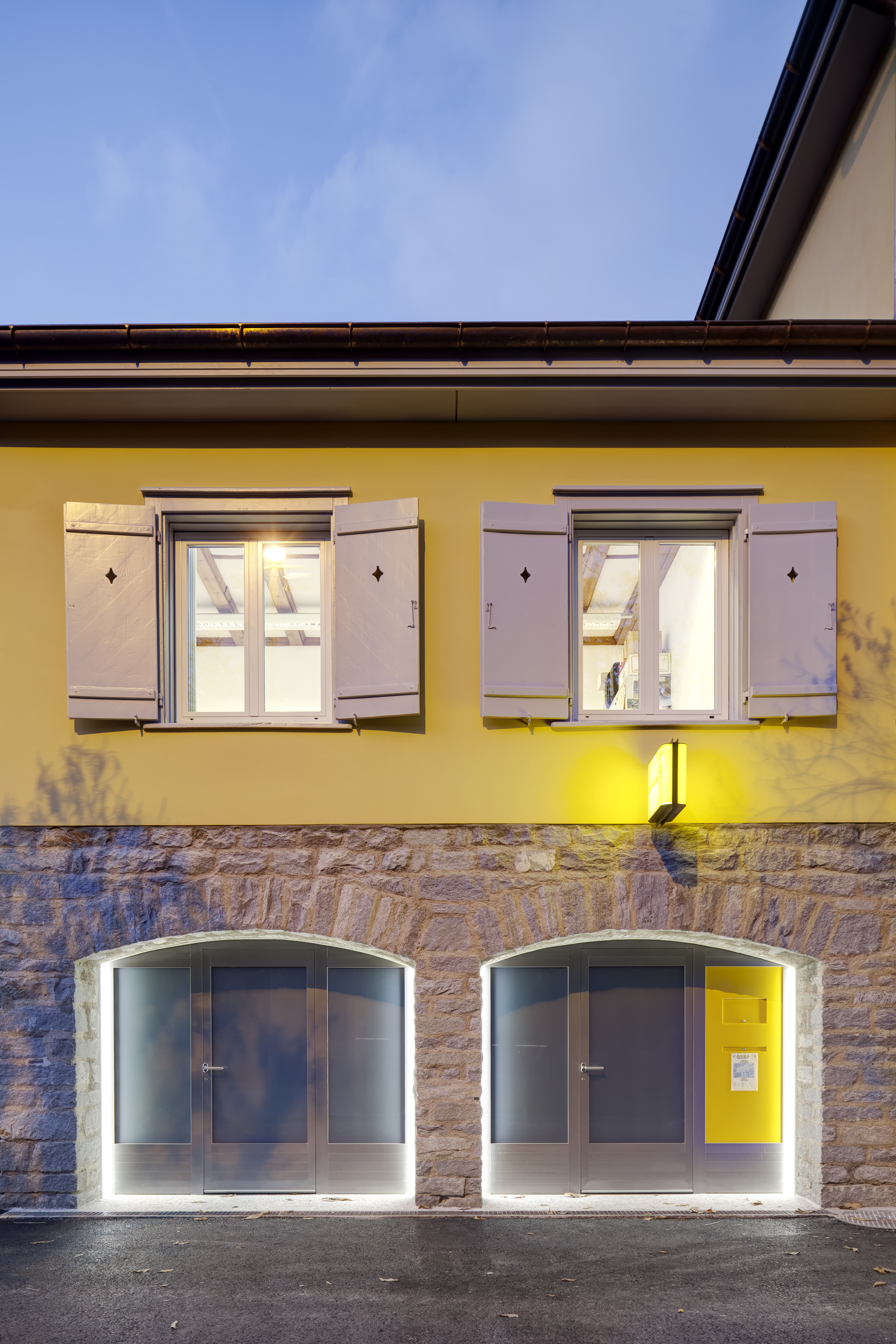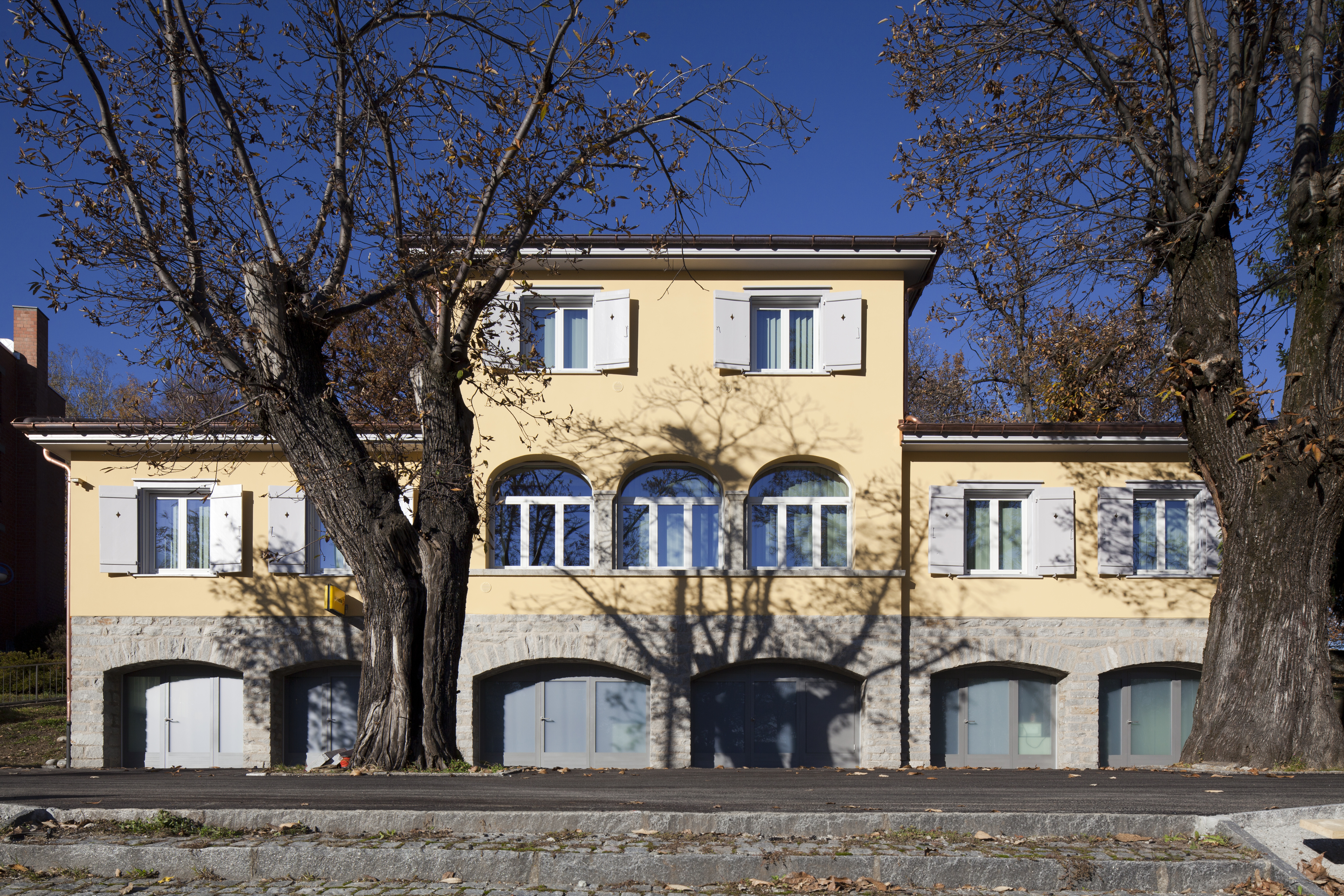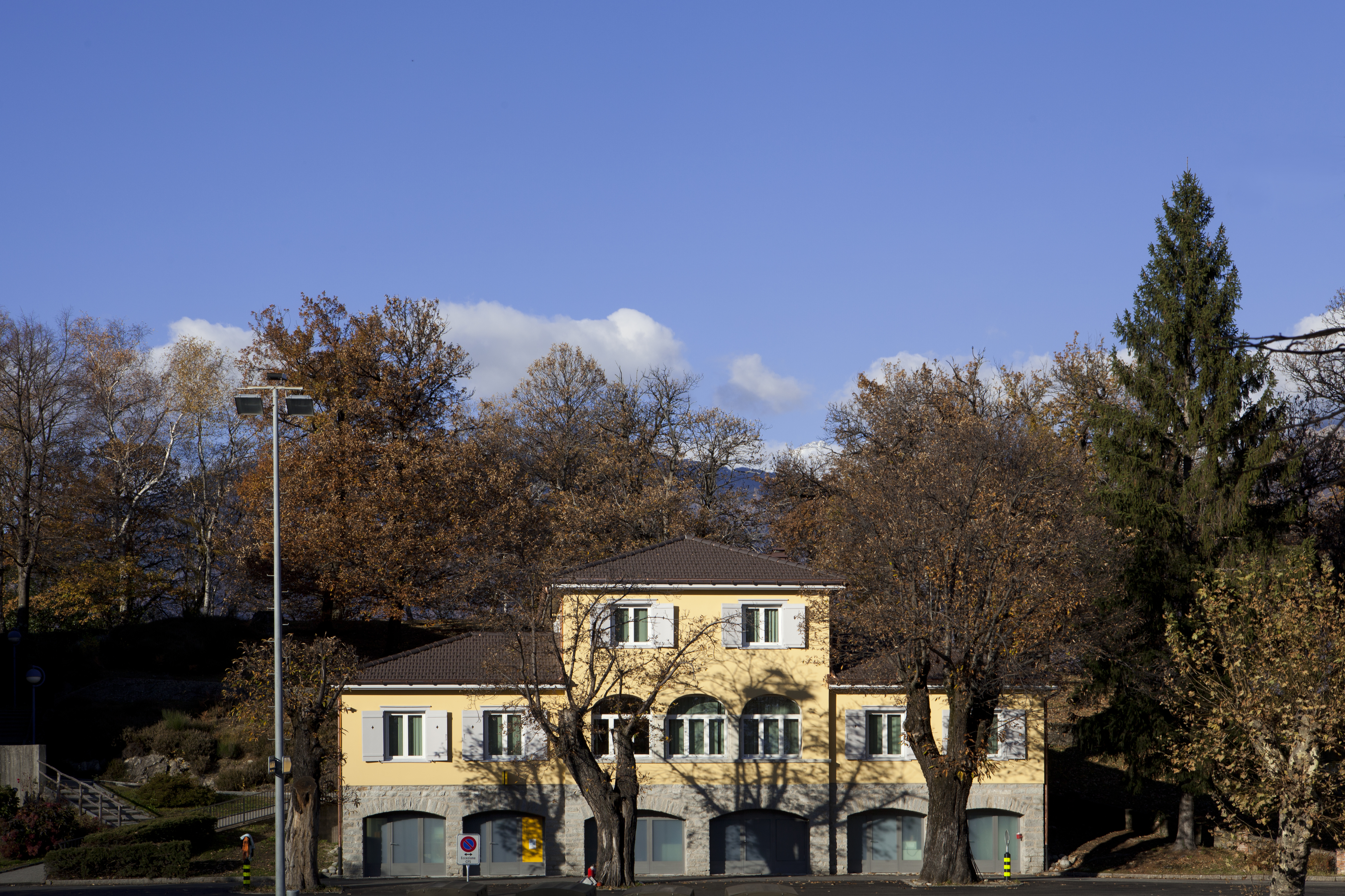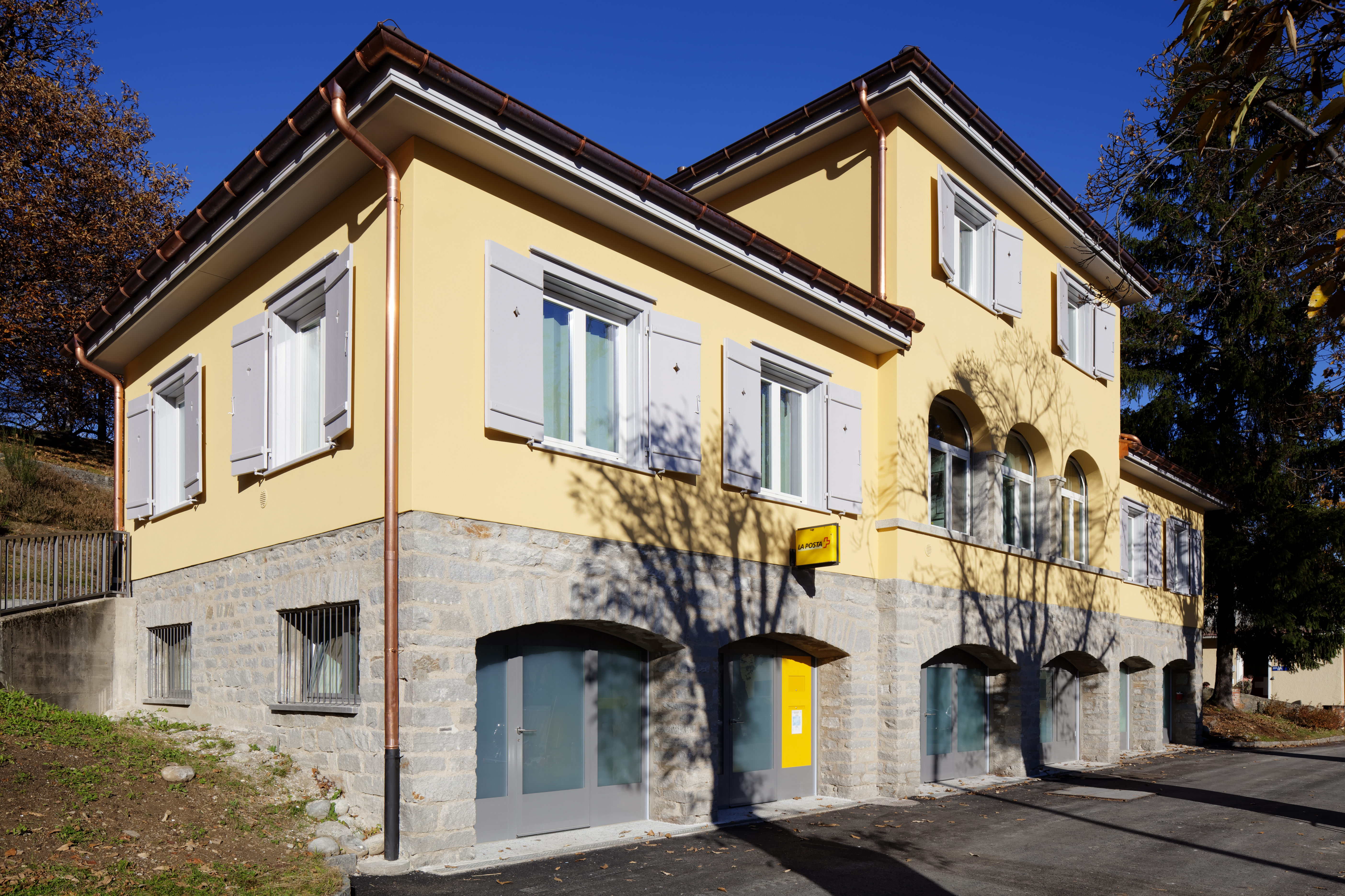 L’edificio, con contenuti amministrativi, postali e di servizio, originariamente ospitava la “stube” della Piazza d’armi. Costruito nel 1935, figura nella lista degli edifici tutelati d’interesse locale. Caratterizzato da uno zoccolo in pietra facciavista, sul quale poggiano delle strutture leggere in legno, il volume è stato oggetto d’interventi di risanamento interni ed esterni, impostati nel rispetto delle caratteristiche architettoniche originarie.