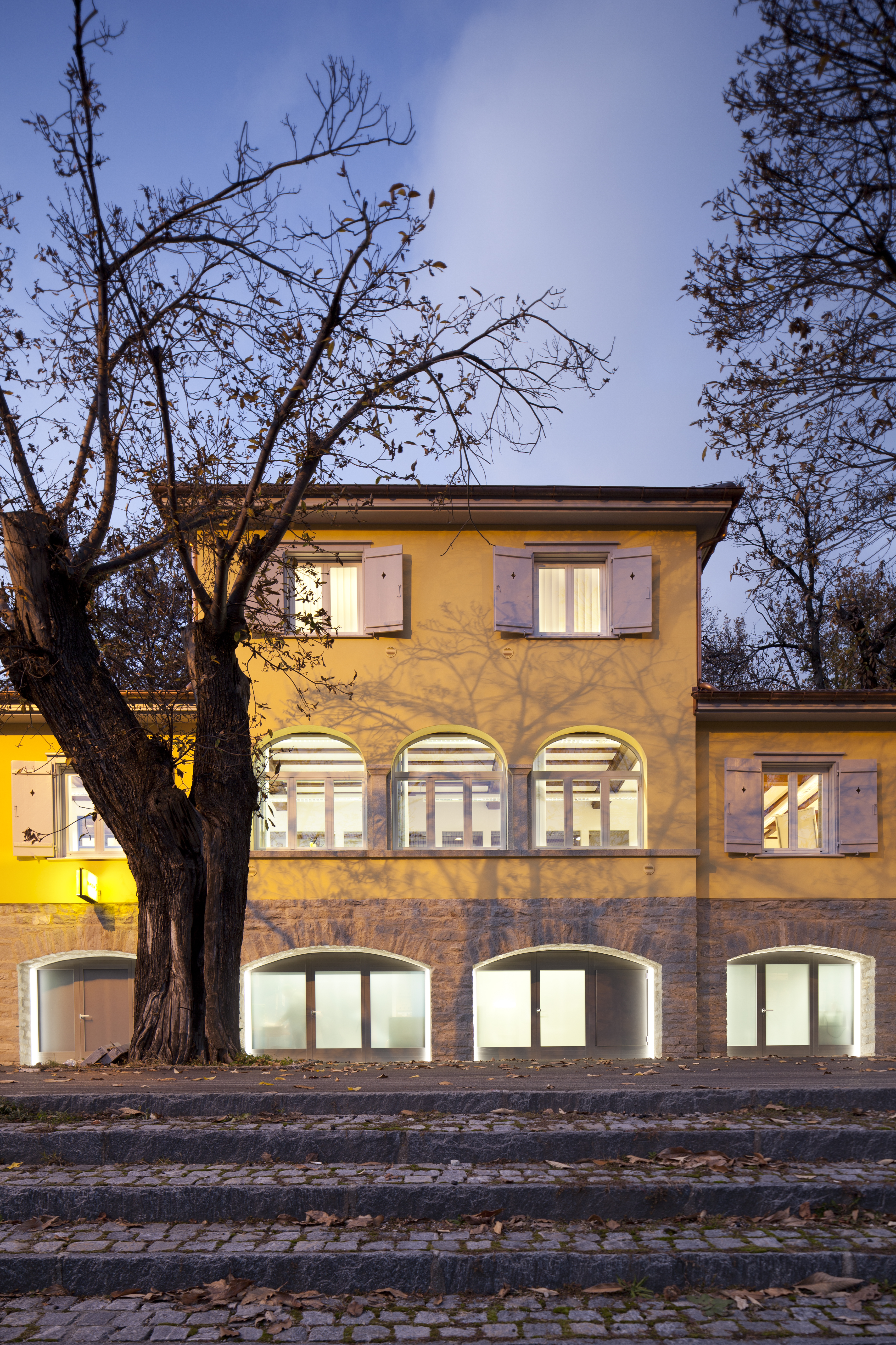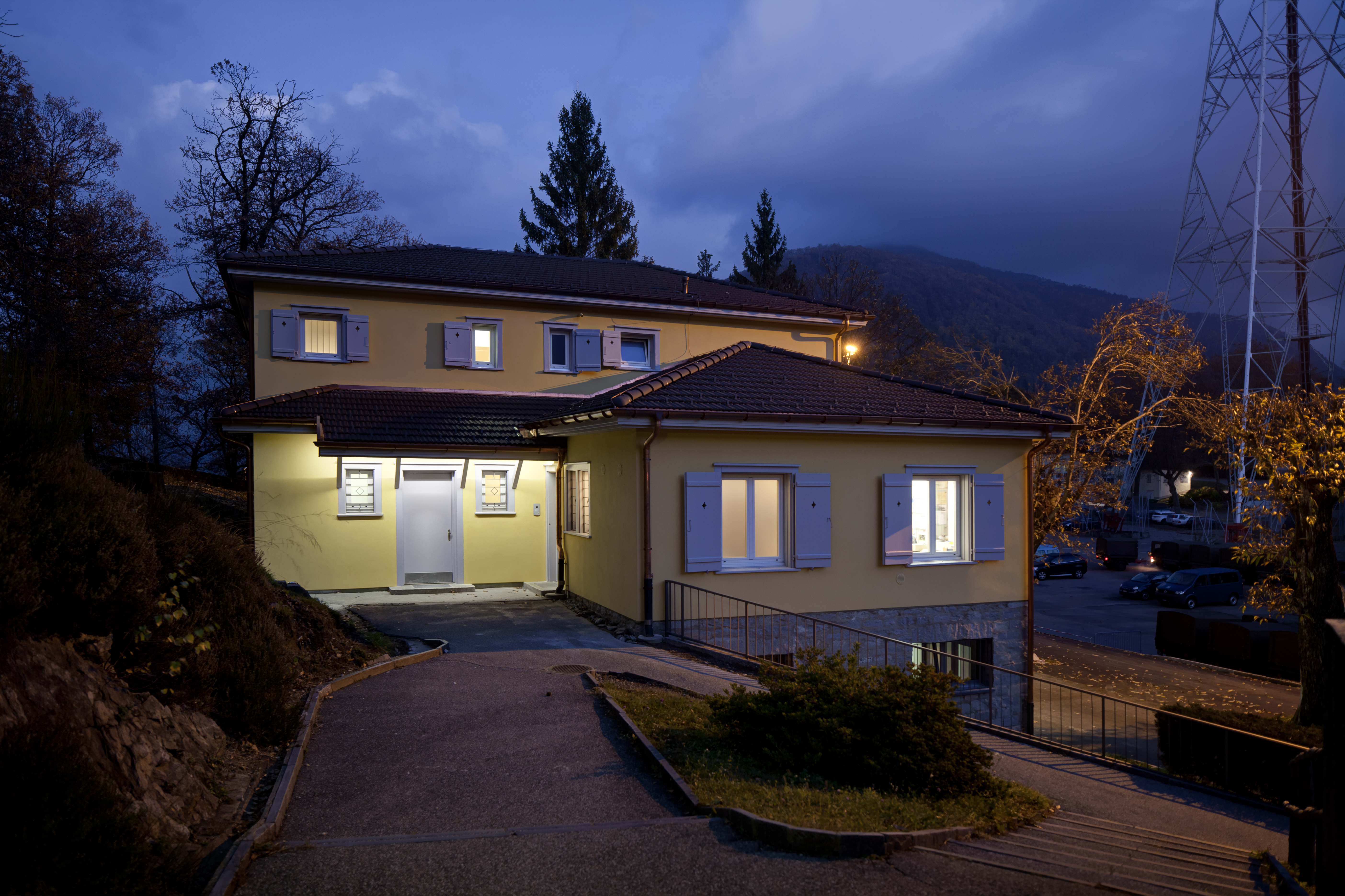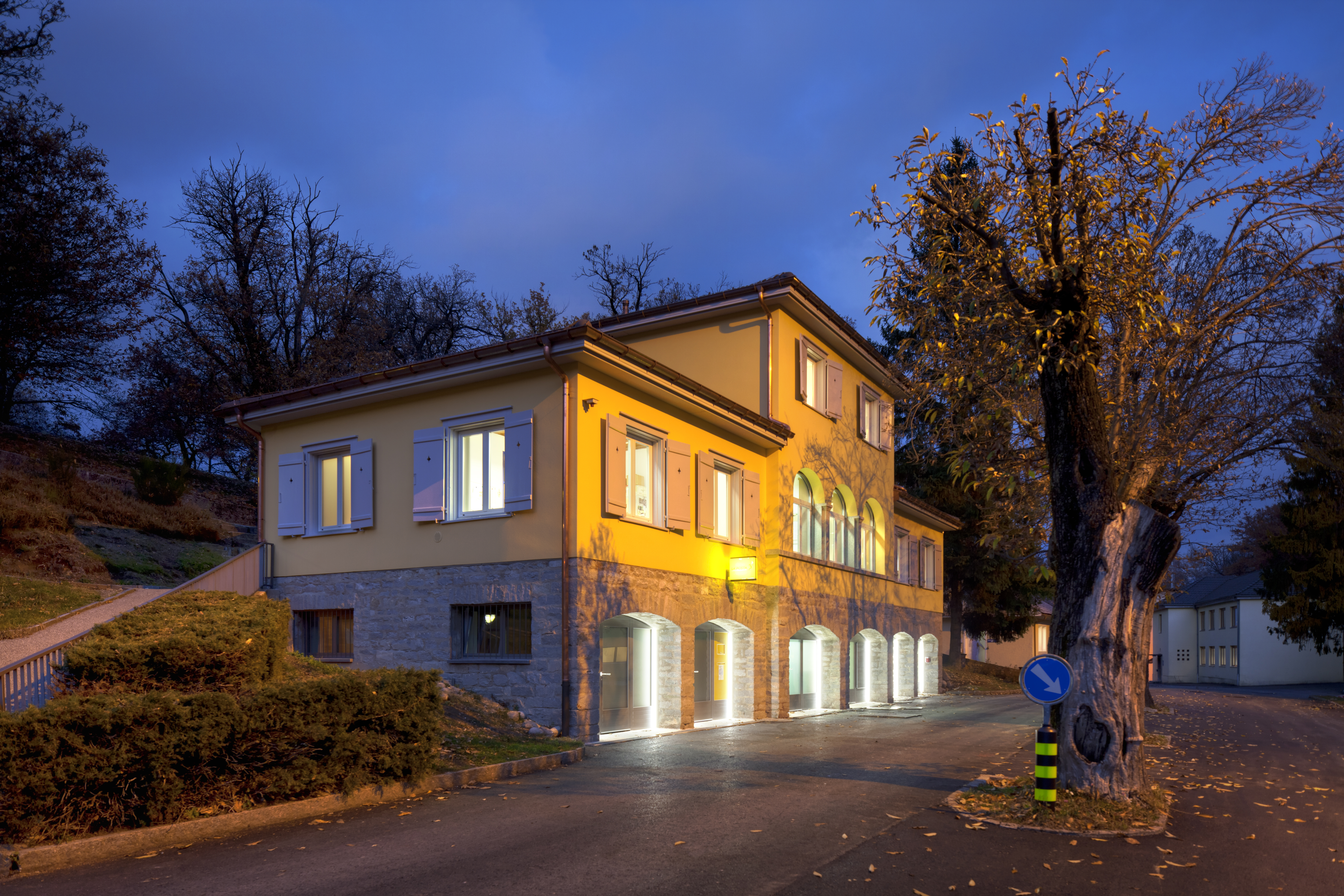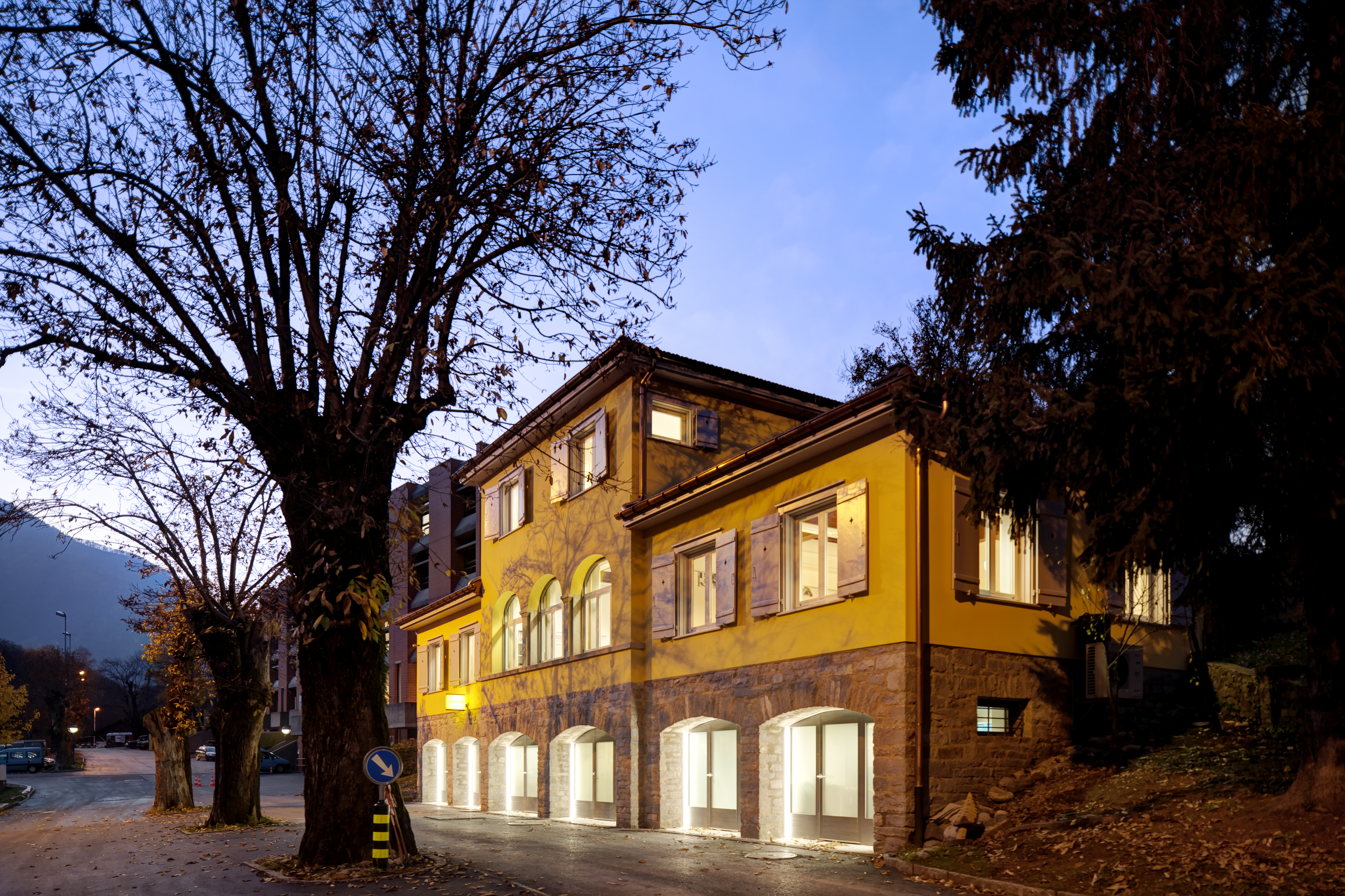 L’edificio, con contenuti amministrativi, postali e di servizio, originariamente ospitava la “stube” della Piazza d’armi. Costruito nel 1935, figura nella lista degli edifici tutelati d’interesse locale. Caratterizzato da uno zoccolo in pietra facciavista, sul quale poggiano delle strutture leggere in legno, il volume è stato oggetto d’interventi di risanamento interni ed esterni, impostati nel rispetto delle caratteristiche architettoniche originarie.
